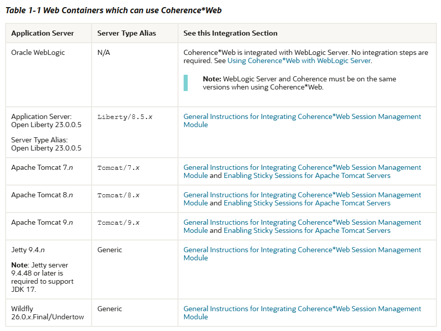 You can configure and deploy Coherence*Web, the session state persistence and management module, for use with a variety of application servers.